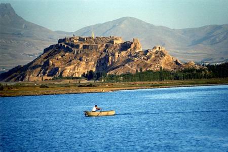 Վանի ժայռը եւ բերդը դիտուած Վանայ լճէն