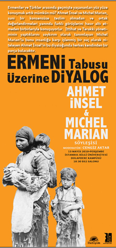 Ստամբուլ – Արիան Բոնզոնի պատրաստած «Երկխոսություններ հայկական տաբուի մասին» վերնագրով գրքի հրատարակումից հետո, որը կազմվել է Ստամբուլի Գալաթասարայ համալսարանի դասախոս, դոկտոր, պրոֆեսոր Ահմեդ Ինսելի և ֆրանսահայ Միշել Մարիանի երկխոսությունների հիման վրա (վերջինիս պապն ականատես է եղել 1915 թ. դեպքերին), կազմակերպվում է նաև մամլո ասուլիս: Հրանտ Դինքի անվան միջազգային հիմնադրամի և «Իլեթիշիմ» հրատարակչության կողմից կազմակերպվող մամլո ասուլիսն սկսվելու է վաղը` ժամը 18:30-ին, Ստամբուլի Բիլգի համալսարանի Դոլափդերե համալսարանական ավանի BS2 սրահում: