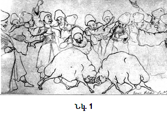 Այդպիսի կռիւների մասին վկայութիւններ կան Սոչիից, Վերին Լոոյից, Ցեբելդայից եւ այն վայրերից, որտեղ բնակչութեան գերակշռող մասը հայեր էին: Եղել են յատուկ այդ գործով զբաղուող գիտակ մարդիկ, որոնք կենդանիներին նախապէս վարժեցրել ու պատրաստել են մենամարտերի համար: Մենամարտերի ժամանակ ժողովուրդը բաժանուել է երկու խմբի, գրազ եկել` գուշակելով յաղթողին: Կենդանու յաղթանակը մեծ պատիւ է բերել տիրոջն ու նրա կողմնակիցներին: Հետաքրքիր են եղել նաեւ աքլորակռիւները, որոնց համար ընտրել են յատուկ կռուարար աքաղաղներ, նրանց կերակրել հում մսով, սրել ճանկերը (նկ. 2): Նշանաւոր են եղել Մեսխորի աքլորակռիւները: Լուսանուշ Գիւրումեանը խնամել ու վարժեցրել է յատկապէս սեւ աքաղաղների:
