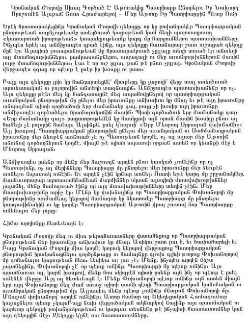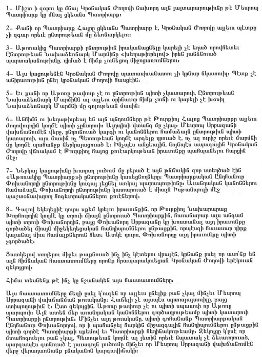 ՄԵԶԻ ԻՆՉԵ՞Ր ՄՏԱԾԵԼ ԿՈՒՏԱ ԿՐՕՆԱԿԱՆ ԺՈՂՈՎԻ ՎԵՐՋԻՆ ԶԵԿՈՅՑԸ