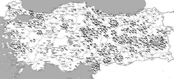 Օսմանյան Կայսրության` Բալկաններում, Միջին Ասիայում, Կովկասում գտնված որոշ վիլայեթների պատկանող բնակավայրերը մնացել են այսօրվա հանրապետության սահմաններից դուրս: Կիպրոսից բացի՝ մյուս շրջաններին վերաբերող տեղեկությունները չեմ ներառել: