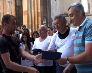Յունիսի վերջը ԵՊՀ պատմութեան բաժանմունքի պաքալորիայի եւ մագիստոսականի շրջանաւարտները՝ շուրջ 100 հոգի, իրենց աւարտական վկայականները ստացան Անիի մայր տաճարին մէջ: Այդ քայլը, ըստ Ա. Մելքոնեանի, պատահական չէր. նախորդ տարի այնտեղ «Գորշ գայլեր»ը հերթական սրբապղծութիւնը իրականացուցած էին՝ նամազ կատարելով: «Այս միջոցառումը դրան իւրատեսակ պատասխան էր, որ ուսանողութեան կողմից մեծ խանդավառութեամբ ընդունուեց», – ըսաւ Ա. Մելքոնեան՝ նշելով, որ մէկ ամիս անց, այլ սրբավայրերու շարքին, Անիի մայր տաճարին մէջ եւս վառեցաւ Համահայկական 5րդ խաղերու անմար կրակը, որ բերուեցաւ Երեւան: