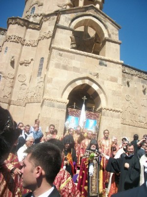Պատարագի ընթացքում թուրք ծայրահեղ ազգայնականների 10 հոգանոց մի խումբ ցույց տվեց անհանդուրժողականության հերթական օրինակը՝ Աղթամար կղզու նավահանգստում կազմակերպելով բողոքի ցույց ընդդեմ իրականացվող պատարագի: Ազգայնականների խումբը ցանկանում էր կղզի շարժվել, սակայն ոստիկանությունը թույլ չտվեց, որ նրանք նույնիսկ նավ նստեն, որից հետո խմբի անունից հայտարարություն արեց Վանի «Ալփերեն օջաքլարը» ազգայնական կառույցի ղեկավարը՝ շեշտելով, որ իրենք դեմ են, որ նախկինում թուրքերի դեմ հարձակումների կենտրոն հանդիսացած հայկական եկեղեցին կրկին գործում է: Հայտարարությունից հետո հավաքված փոքրաթիվ ազգայնականները պարզեցին Թուրքիայի եւ Ադրբեջանի դրոշները եւ հեռացան: