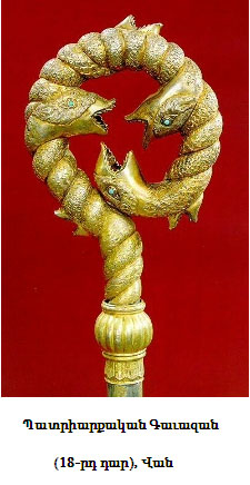 1) Ծիսական նպատակներով կամ եկեղեցական արարողութիւնների ընթացքում գործածուող արծաթէ, ոսկէ, պղնձէ սրբազան առարկաներ-սկիհներ, խաչեր, վարդապետական գաւազաններ, բուրվառներ, խնկամաններ, արծաթապատ աւետարաններ, միւռոնի ամաններ, աղաւնիներ, տաշտեր, ջրամաններ, սափորներ, քշոցներ, աշտանակներ, ջահեր, կանթեղներ, սրբատուփեր, մասնատուփեր, մասունքի պահարաններ, գոյքի եւ շուրջառի ճարմանդներ, արծաթէ վակասներ եւ գօտիներ, մատանիներ, ծնծղաներ, թանաքամաններ եւ այլն: