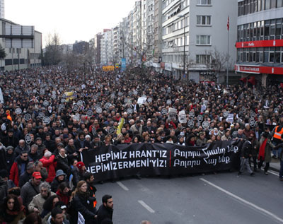 Ստամբուլի հայկական «Ակոս» թերթի խմբագրապետ Հրանտ Դինքի սպանության 5-րդ տարելիցի առիթով, հայազգի լրագրողի ընկերների եւ հարազատների նախաձեռնությամբ, նրա սպանության վայրում, «Ակոսի» խմբագրատան մոտ, բազմահազարանոց ցույց է անցկացվել: