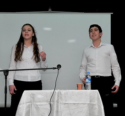 Հանդիսավարն էր Կեդրոնականի սաներէն Սարին Ագպաշ, որ բարի գալուստ մաղթելէ յետոյ բեմ հրաւիրեց երկու Կեդրոնականցիներ՝ Թալիա Քիւրքճիւօղլու եւ Առատ Էօզքայա, որոնք փոխն ի փոխ արտասանեցին Զահրատի անտիպ մէկ բանաստեղծութիւնը Կեդրոնական Ազգ. Վարժարանի մասին։