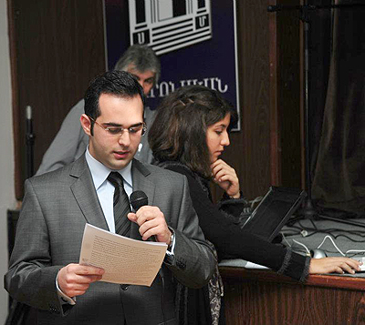 Կեդրոնական Սանուց Միութեան սրահին մէջ 3 Մարտ 2012, Շաբաթ երեկոյ մշակութասէր հասարակութեան ծանօթացուեցաւ նորատիպ «Քայլեր դէպի Կեդրոնական Ազգ. Վարժարան» հատորը։