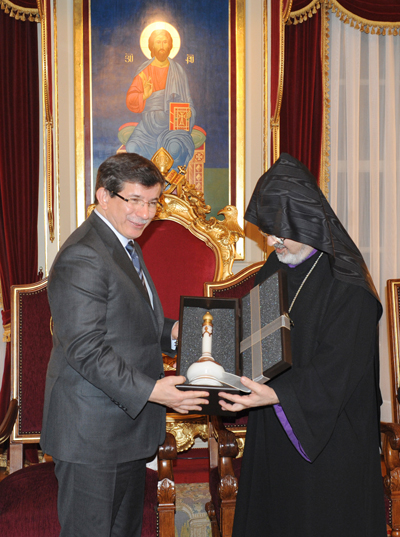 Թուրքիոյ Արտաքին Գործոց Նախարար Ահմէտ Տաւութօղլու 3 Մարտ 2012, Շաբաթ երեկոյեան այցելեց Պատրիարքարան եւ շքամուտքին դիմաւորուեցաւ Աթոռոյս Դիւանապետ Գերպ. Տ. Թաթուլ Ծ. Վրդ. Անուշեանի, Աթոռոյս միաբաններէն Գերպ. Տ. Զաքէոս Ծ. Վրդ. Օհանեանի, Ս. Աստուածածին Աթոռանիստ Մայր Տաճարի Թաղային Խորհուրդի Ատենապետ Հրանդ Մոսկոֆեանի եւ Կէտիկփաշայի Ս. Յովհաննէս Եկեղեցւոյ Թաղային Խորհուրդի Ատենապետ Յարութիւն Շանլըի կողմէ։