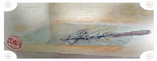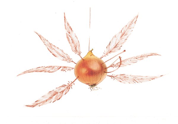 Պահքի շաբաթներուն առաստաղէն կախուող սոխը իր եօթ փետուրներով։ Գծագրութիւնը՝ Խուան Մանուէլ Մորենոյի կողմէ, Յուշամատեան։