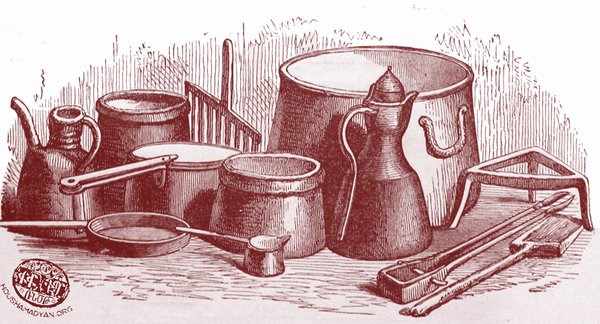 Տնային գործածութեան պղնձեայ իրեր (Աղբիւր՝ Henry J. Van-Lennep, Bible lands. Their modern customs and manners, part II, London, 1875)