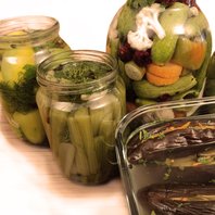 Բանջարեղէնը տեղադրել ապակեայ կարասներու մէջ, առանքները դնել ազատքեղն ու սխտորը, պատրաստել աղաջուր+քացախ խառնուրդը եւ լեցնել վրան: