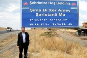 Այս մարդը Տիարպեքիրի (Տիգրանակերտ) նախկին քաղաքապետն է (Աբդուլլահ Դեմիրբաշն իրականում Դիարբեքիրի Սուր շրջանի քաղաքապետն է-Ակունքի խմբ.), որ քաղաքի բոլոր բարձրայարկ շէնքերուն ճակատին կը փակցնէր նման պաստառներ, որոնց վրայ կ՛աւելցնէր «Բարի եկաք ձեր երկիրը, Հայե՛ր»: Ան նաեւ որոշած էր կազմակերպել հայոց լեզուի