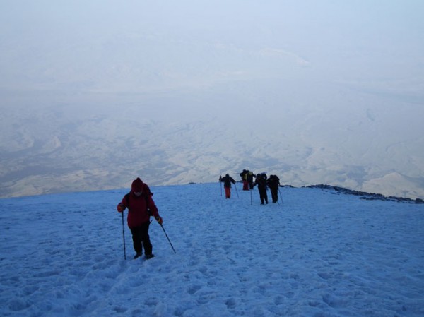 «Երկրորդ բանակավայրն էինք, երբ ձիւնեց, եւ մեզի ըսուեցաւ, որ հաւանաբար չկարենանք շարունակել: Բարեբախտաբար երկինքը պայծառացաւ, ու մենք աստղազարդ գիշերով 7 հոգիով, լոյսերով մէկ գիծի վրայ սկսանք բարձրանալ դէպի գագաթ»: