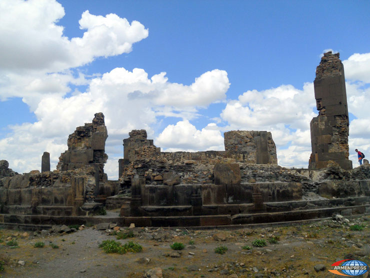 Առջեւում զուարթնոցատիպ Գագկաշէն եկեղեցին էր, որից այսօր գրեթէ ոչինչ չէր մնացել: