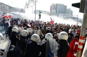 Որոշ լրատվամիջոցների աչքից չի վրիպել կադրեր, որտեղ ոստիկանները ծեծում են Թուրքիայի դրոշը պարզել ցանկացող անձանց: Ոստիկանությունը երթ անել ցանկացողների դեմ օգտագործել է ջրցան մեքենաներ եւ արցունքաբեր գազ: Որոշ տեղեկություններով՝ արցունքաբեր գազից վնասվածք է ստացել նաեւ Ժողովրդահանրապետական կուսակցության առաջնորդ Քեմալ Քըլըչդարօղլուն: