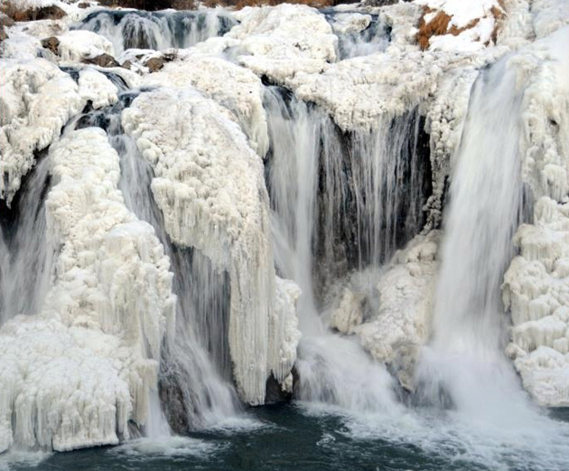 Մոտ 15 մետր բարձրությունից գահավիժող ջրի շիթերի մի մասը սառցակալել են՝ ստեղծելով գեղեցիկ սպիտակ տեսարան։