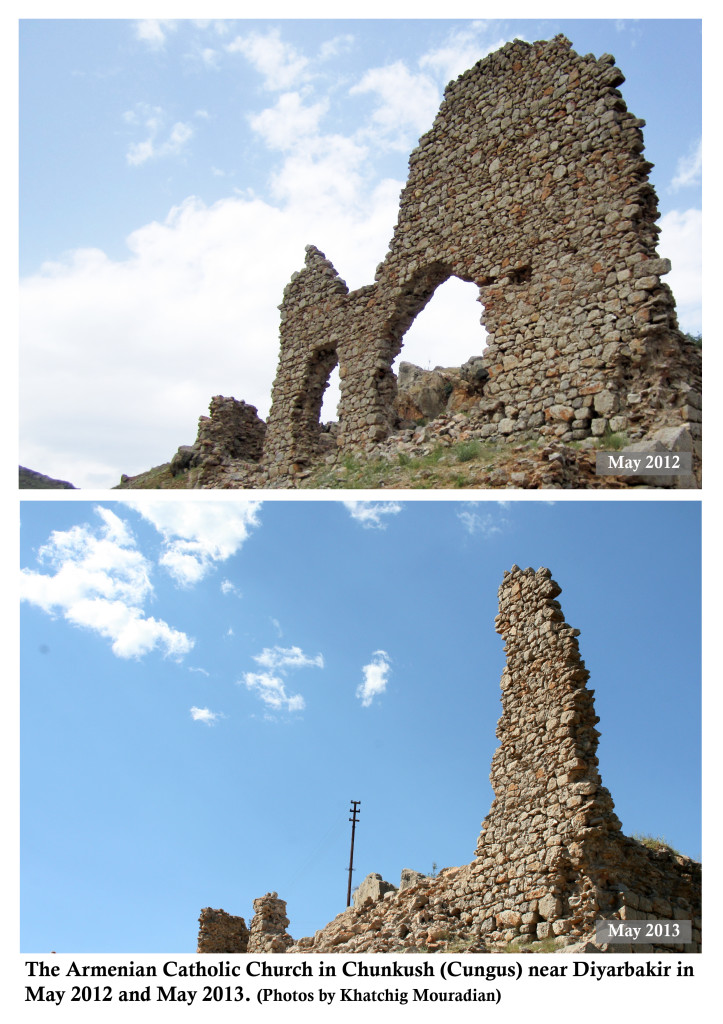 Հայ կաթոլիկ եկեղեցին Չնքուշում` Դիարբեքիրից ոչ հեռու. 2012 մայիս և 2013 մայիս (լուսանկարը` Խաչատուր Մուրադյանի)