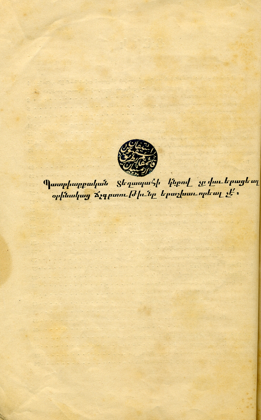 Սահմանադրության տեքստի պատճենումը կատարվել է Հունաստանում հրատարակվող ARMENIKA ամսագրի խմբագրության գրադարանում պահվող օրինակից: Akunq.net