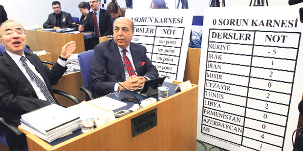 Ընդդիմադիր պատգամավորները Թուրքիայի արգործնախարարի աշխատանքը գնահատելու համար աշակերտների համար նախատեսված օրագրի պես ցուցատախտակ են պատրաստել, որի վրա գրված են երկրների անունները եւ Դավութօղլուի գնահատականը` այդ երկրների հետ հարաբերությունների համար։