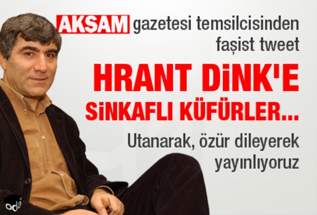 Թուրքական «Աքշամ» պարբերականի լրագրող Օսման Հոքեմենը Twitter-ի իր էջից հայհոյել է Հրանտ Դինքին։