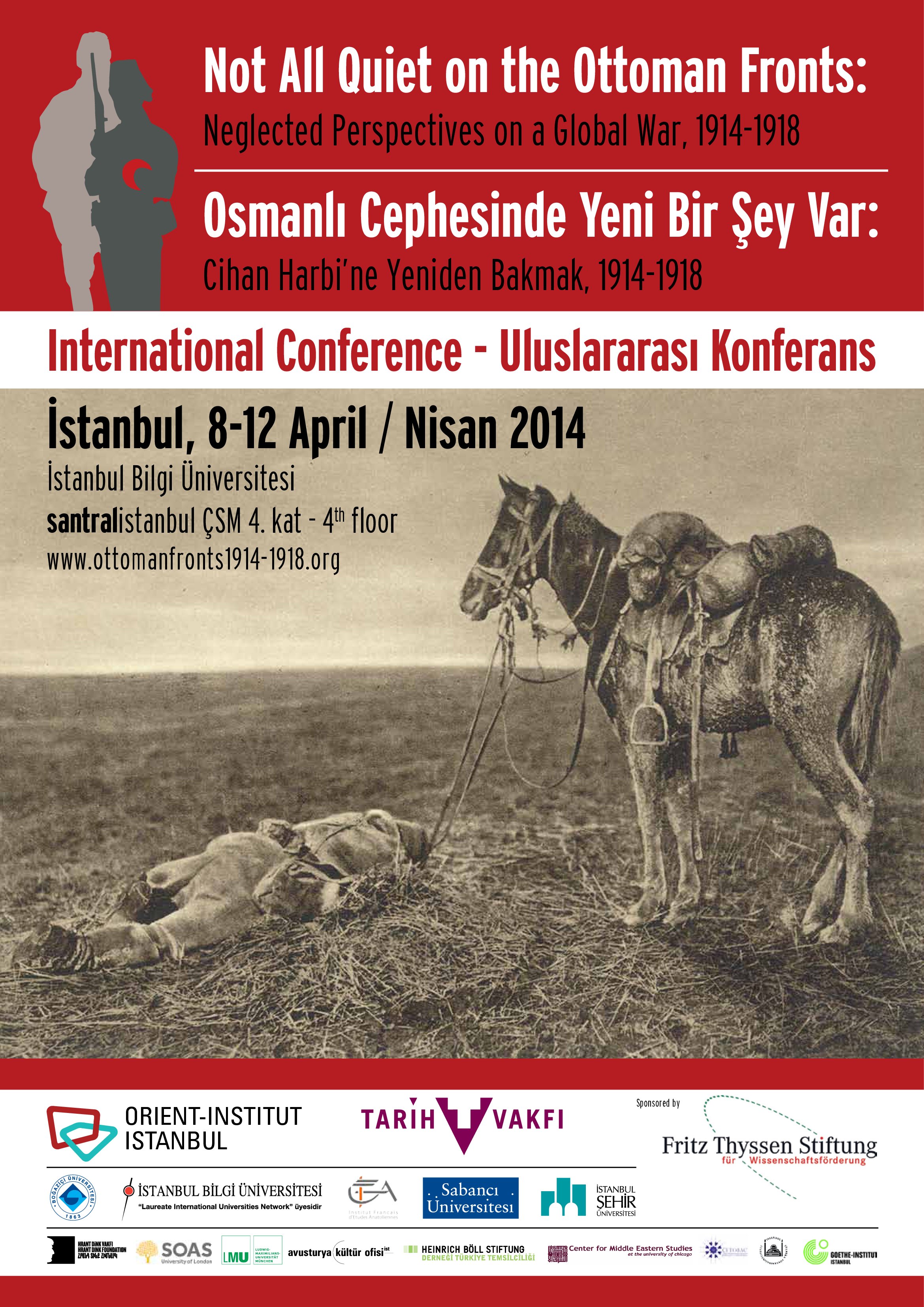 Ապրիլի 8-12 Ստամբուլի Բիլգի համալսարանում կայացավ միջազգային գիտաժողով («Ամեն ինչ չէ, որ խաղաղ է օսմանյան ռազմաճակատում. Հեռանկարներ համաշխարհային պատերազմի (1914-1918) վերաբերյալ, որոնք անուշադրության են մատնվել (Not All Quiet on the Ottoman Fronts: Neglected Perspectives on a Global War, 1914-18)»)՝ նվիրված Առաջին համաշխարրհային պատերազմի 100 ամյակին: Այն կազմակերպել էին Պատմության հիմնադրամն (Tarih Vakf) ու Ստամբուլի Օրիենտ ինստիտուտը (Orient-Institut Istanbul), աջակցում էին Բողազիչի, Սաբանջը, Ստամբուլի Բիլգի, Շեհիր համալսարաններն ու Անատոլիական ուսումնասիրությունների Ֆրանսիական ինստիտուտը: Տեղի ունեցան 20-ից ավելի նիստեր, որոնց ընթացքում ներկայացվեին ավելի քան 70 զեկույցներ: Մասնակցում էին վաստակաշատ և հայտնի գիտնականներ տարբեր համալսարաններից՝ Բենջամին Ֆորթնա, Հանս Լուկաս Քիզեր, Ջեյ Վինթեր, Վոլֆգանգ Գյուստ, Հեղնար Ուաթենփոն, Մեթե Թունջայ, Ռոլանդ Սյունի, Մարգարեթ Անդերսոն, Թաներ Աքչամ, Մուսթաֆա Աքսաքալ և այլք: