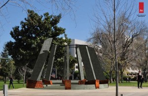 Յանձնախումբին գլխաւոր նախաձեռնութիւնն է նշեալ համալսարանին մէջ Հայկական Ցեղասպանութեան նուիրուած յուշարձանին կառուցումը: Բոլորակաձեւ դասաւորուած ինը սիւներէ բաղկացող եւ Ծիծեռնակաբերդը յիշեցող այս յուշարձանը պիտի կառուցուի Ֆրեզնոյէն ճարատարպետ Փօլ Հալաճեանի ձեռամբ, որ իբրեւ շինանիւթ պիտի օգտագործէ նաեւ հայկական տուֆ քարը: Սիւներէն վեցը կը ներկայացնեն պատմական Հայաստանի վեց նահանգերը, իսկ մնացեալ երեքը՝ Հայաստանի Հանրապետութիւնը, Սփիւռքն ու Կիլիկիան: Տարբեր հասակներով սիւներէն ամենաբարձրը 19 ոտք է, իսկ ամենակարճը՝ 15, խորհրդանշելով 1915 թուականը: