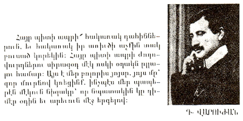26 օգոստոս 1915-ին «Ցեղասպան Թուրք»ը մարմնաւորող ոճրագործներ դաշոյններով մորթոտեցին Հայկեան Հանճարին ճառագայթող մեծութիւններէն երկուքը՝ անզուգական Դանիէլ Վարուժանն ու Ռուբէն Սեւակը։
