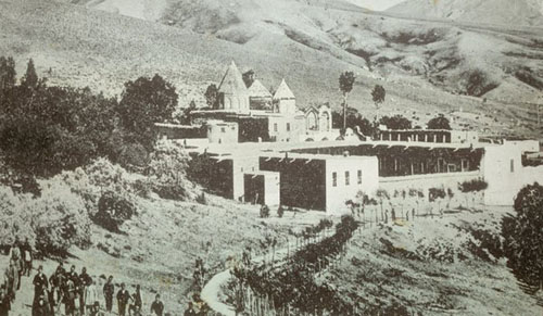 Վարագում գտնվող Սուրբ Նշան վանքը: Վանքի անմիջապես կողքին երևում է Խրիմյանի հիմնած Ժառանգավորաց վարժարանը: (ՀԲԸՄ, Նուբարյան գրադարան, Փարիզ)