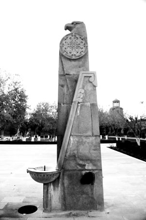 «Թղթե շերեփին» նվիրվախ հուշարձանը` Էջմիածնի այգում (Զաքարյա Միլդանօղլուի անձնական արխիվ)
