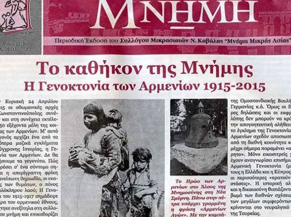 Հայոց Ցեղասպանութեան 100ամեակին առիթով, ընդարձակ հրատարակութիւն մը կատարեց յունական «Փոքր ասիական յուշեր» միութեան պարբերաթերթը։