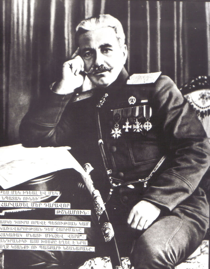 Այնուհետև անցնում է զորավարի կերպարի սևացմանը` նրան մեղադրելով Օսմանյան կայսրությանը մեջքից հարվածելու, խաղաղ բնակչության ջարդեր իրականացնելու մեջ: