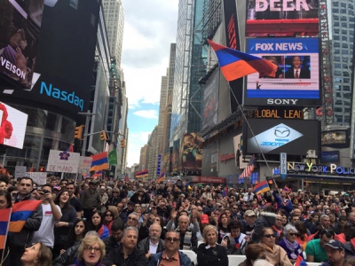 Նյու Յորքի Times Square հրապարակում ապրիլի 24-ին՝ տեղական ժամանակով ժամը 14:00-ից 16:00-ն, Հայոց ցեղասպանության 101-ամյակին նվիրված միջոցառում կկայանա: Ցեղասպանությունների իրազեկման ամսվա ընթացքում կազմակերպիչները հասարակության տարբեր խավերի ներկայացուցիչներին հրավիրել են միավորվել՝ ի հիշատակ Հայոց ցեղասպանության, Հոլոքոստի եւ տեղի ունեցած մյուս ցեղասպանությունների, գրում է MassisPost-ը: