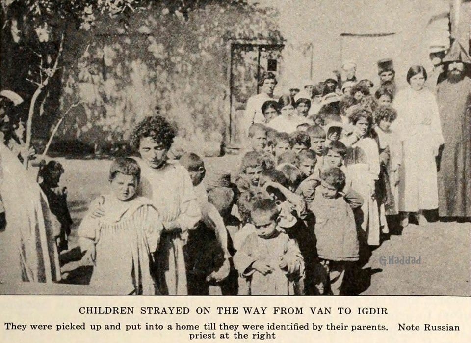 «1915 թ. հուլիսին արված բացառիկ այս լուսանակարում Վանից տեղահանված և մոլորված հայ երեխաներն են, որոնց պատսպարել են Իգդիր տանող ճանապարհին, մինչ իրենց կգտնեն ծնողները, որոնք դեռևս չեն հասցրել գաղթել Վանից: