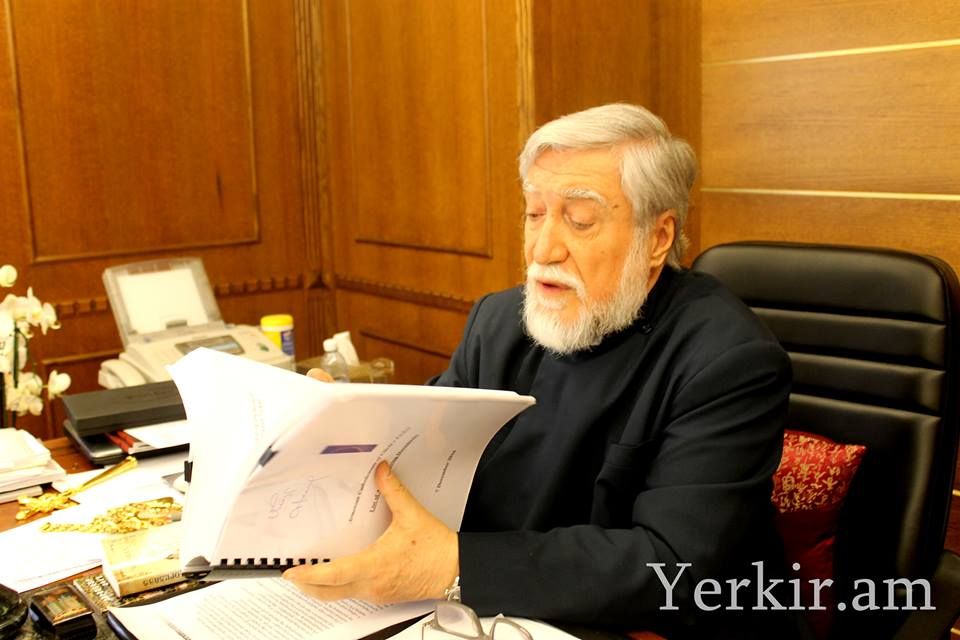 ԱՐԱՄ Ա.- Սա կ՛ենթադրէ լուրջ ուսումնասիրութիւն, մասնագէտներէ բաղկացած յանձնախումբ պէտք է կազմել: Յանձնախումբ մը, որ լաւապէս ուսումնասիրէ մեր դատը, մեր պահանջատիրութիւնը, յատկապէս՝ մեր դատին իրաւական երեսը եւ ամէն բանէ առաջ՝ պէտք է ցանկագրումը կատարուի մեր կալուածներուն, ամբողջական ցանկագրումը չունինք: Հոս մեր արխիւներուն մէջ մենք ունինք ցանկեր, Հայաստանի արխիւներուն մէջ կան, Սուրբ Էջմիածինի արխիւներուն մէջ կան, Պոլսոյ, Երուսաղէմի եւ այսպէս բուռ մը արխիւներ ունինք, մեր կալուածներու ցանկերը կան: Պէտք է, որպէս առաջին քայլ, այդ կալուածներու ցանկագրումը կատարուի, ուսումնասիրութիւնը կատարուի, յստակացումը կատարուի, եւ այդ ցանկին համաձայն՝ մենք առաւելագոյն չափով փաստաթուղթեր, նկարներ պէտք է մէկտեղենք, հաւաքենք, ամբողջական ծրարը պատրաստենք մեր կալուածներուն: Նման հարցին մենք չենք կրնար այլեւս պատահական կերպով մօտենալ, զուտ զգացական կերպով, քարոզչական նպատակներ հետապնդելով չենք կրնար մօտենալ: Հեռու պէտք է մնանք այս պարագայական մօտեցումներէն: Յանձնախումբ մը, որուն մաս կը կազմեն Հայաստանի պետութեան ներկայացուցիչները, երկու կաթողիկոսութեանց ներկայացուցիչները, կաթողիկէ, աւետարանական համայնքներու ներկայացուցիչները, Հայ Դատի, մեր կառոյցներու մարմիններուն ներկայացուցիչները: Այս մասին ես խօսած եմ, նաեւ առաջարկած եմ Հայաստանի պետութեան եւ մեր բոլոր կառոյցներուն: Ժամանակը հասած է, որ մենք այս լուրջ գործընթացքին սկսինք: Այլապէս ամէն Ապրիլ 24ի հանդէսներ պիտի կազմակերպենք, ցոյցեր պիտի կազմակերպենք, քայլարշաւ պիտի կազմակերպենք, հրատարակութիւններ պիտի կատարենք, ցուցահանդէսներ պիտի կազմակերպենք: Այս բոլորը, անկասկած, կարեւոր է, սակայն այդ բոլորէն անդին՝ մենք կարեւորութեամբ պէտք է շեշտենք միասնական աշխատանք կատարելը, յատկապէս՝ իրաւական մարզէն ներս: Այս է, որ մենք պէտք է կատարենք: Եւ ես կը կարծեմ, թէ այս է մարտահրաւէրը ու պատգամը Հայոց Ցեղասպանութեան 100ամեակի համազգային նշման: Ահաւասիկ հռչակագիրը մենք յայտարարեցինք Հայաստանի մէջ. սա կարեւոր քայլ մըն էր: Եւ ես վստահ եմ, որ Հայաստանի պետութիւնը իր արտաքին քաղաքականութեան մէջ յատուկ կարեւորութիւն պիտի տայ Ցեղասպանութեան ճանաչման եւ մեր իրաւունքներու հետապնդման հարցին: