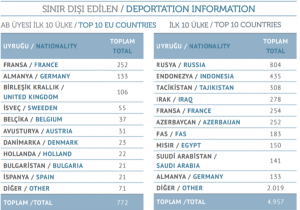 Թուրքիայի ներքին գործերի նախարարության` 2017-ի հուլիսին հրապարակած զեկույցի համաձայն՝ 2011 թ.մինչև 2017թ. հուլիս Թուրքիայի տարբեր սահմաններից պատերազմական գոտիներ անցնել ցանկացող 99 երկրների մոտ 5000 քաղաքացի է արտաքսվել այս երկրից: Նրանցից 252-ը եղել են Ադրբեջանի քաղաքացիները: