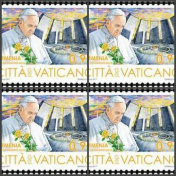 Վատիկանը կաթոլիկ եկեղեցու առաջնորդ Հռոմի Պապ Ֆրանցիսկոսի՝ 2016 թվականի այցերին նվիրված նամականիշներ է թողարկել, որոնց շարքում հատուկ տեղ է զբաղեցնում Հայաստան պատմական այցին նվիրված նամականիշը: Լուսանկարում Հռոմի Պապ Ֆրանցիսկոսն է՝ Ծիծեռնակաբերդի Հայոց ցեղասապանության զոհերի հուշահամալիրի ֆոնին: