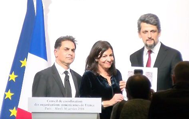 Փարիզի քաղաքապետ Անն Իտալկոն Կարօ Փայլանին յանձնած է Grand Vermeil պատուոյ մետալը