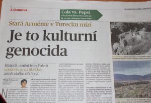 Չեխական ՄՖ Դնես ազդեցիկ օրաթերթ 15 Յունիսի թիւնին մէջ տպագրած է խմբագիր Միլատա Պրոկոպովայի հարցազրոյցը արուեստի պատմաբան, Բռնոյի Մասարիկի անուան համալսարանի Վաղ միջնադարեան ուսումնասիրութիւններու կեդրոնի տնօրէն Իւան Ֆոլետտիի հետ հարցազրոյցը, ուր պատմաբանը ընթերցողներու ուշադրութեան կը ներկայացնէ Թուրքիոյ մէջ հայկական ժառանգութեան ոչնչացման փաստը։