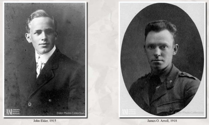 Խանդավառ կամաւորականներ Ճոն Էլտըրն ու Ճէյմս Էրոլը՝ նուիրուած անվերջ թուացող Առաջին համաշխարհային պատերազմին մասնակցող ու սարսափելի պայմաններու մէջ կռուող զինուորներու ոգին բարձր պահելու գործին, օրհասական պահերուն որպէս հերոսներ կանգնեցան նաեւ հայ ժողովուրդի կողքին: