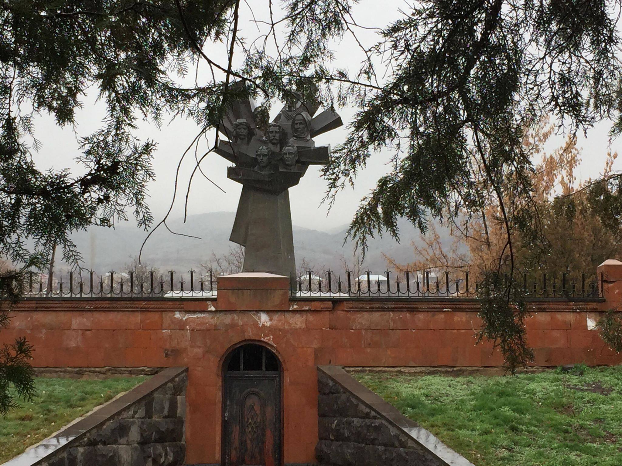 Հայ ազատամարտիկների հուշարձանախումբը կանգնեցվում է Արաբոյի, Սմբատ Փաշայի (Մախլուտոյի), Աղբյուր Սերոբի, Սոսե Մայրիկի, Գևորգ Չաուշի, Սողոմոն Թեհլերյանի և խորհրդային զինվորի կիսանդրիներով: Սկզբնապես խորհրդային զինվորի արձանն էլ է դրվում, որպեսզի թույլ տան կանգնեցնել այն, սակայն տեղադրելու ընթացքում քանդակագործին առաջարկվում է զինվորի արձանի փոխարեն Գարեգին Նժդեհի կիսանդրին ձուլել: