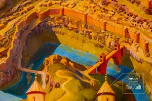 Նկարում քաղաքն է՝ իր կյանքով ու մարդկանցով, ասում է թանգարան-ինստիտուտի գիտական քարտուղար Աշոտ Գրիգորյանն ու նկարի մասին իր խոսքը դարձնում վիզուալ զբոսանք՝ Բագրատունյաց մայրաքաղաքով: