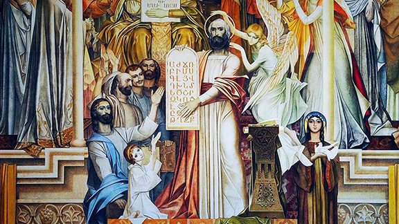 «Արիւն-աւերանքի դարեր եկան ու գնացին, գահեր հիմնուեցին, գահեր խորտակուեցին, ազգաբնակչութիւնը սպառուելու չափ ջնջուեց, ստրկութեան ամենադաժան լծեր կրեց իր վզին: Բայց խաւարի ու անէծքների մէջ չէին մարում կենդանութեան կրակները: Դրանք ամէն ժամանակ, ամէն տեղ միեւնոյն կերպարանքն ունէին՝ մեսրոպեան գիրը: Մեսրոպը իր կատարած գործով ամենամեծն է մեր պատմական հերոսների մէջ: Մեր հազարամեայ անցեալի այն երկար ճամբուն, որուն վրայ փռուած են մեր անհուն տառապանքները, ո՛չ բանակներ ունէինք մեր պահպանութեան համար, ո՛չ ուժ, ո՛չ հնարաւորութիւն, ո՛չ էլ արտաքին օգնութիւն, այլ մէկ հատիկ բան միայն՝ մեսրոպեան գիրը».