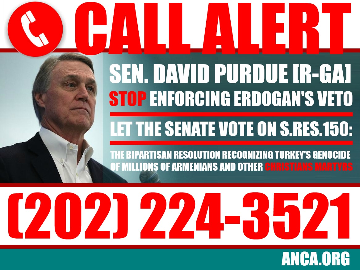 ՈՒԱՇԻԿԹԸՆ.- Նոյեմբեր 21ին, Թուրքիոյ ուրացման արշաւին ազդու կերպով հակադարձելու նպատակով, ծերակուտականներ Ռապըրթ Մենենտեզ (Դ., Նիւ Ճըրզի) եւ Թետ Քրուզ (Հ., Թեքսաս) տպաւորիչ ելոյթներ ունեցան Ծերակոյտին բեմէն, առաջարկելով միաձայնութեամբ հաստատել Հայոց Ցեղասպանութիւնը ճանչցող թիւ 150 բանաձեւը, սակայն, այս անգամ ծերակուտական Տէյվի Փըրտու (Հ., Ճորճիա) կասեցուց բանաձեւը քուէարկութեան դնելու փորձը։