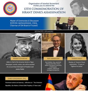 Երեկոյեան ժամը 6էն սկսեալ, Հրանդ Տինքի նահատակութեան 13րդ տարելիցի ոգեկոչման պաշտօնական ձեռնարկը տեղի պիտի ունենայ Պոլսահայ միութեան կեդրոնին մէջ (19726 Sherman Way, Winnetka, CA 91306)։