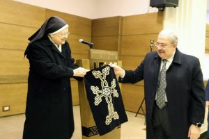 Անարատ յղութեան հայ քոյրերու միաբանութեան մեծաւոր մայր Արուսեակ Սաճոնեան իր սրտի խօսքին մէջ հաստատեց, որ մարաշցիները եկեղեցասէր եւ հաւատարիմ աղօթող քրիստոնեաներ եղած են: Ան ըսաւ, որ ինք 30 տարի աշխատած է Հայաստանի մէջ, ուր զանազան գործունէութիւններու կողքին միաբանութիւնը ունի որբանոց մը, որուն մէջ զանազան տեսակի ձեռագործներ կը սորվեցնեն երեխաներուն եւ 4-5 տարի առաջ սկսած են Մարաշի ձեռագործը սորվեցնել: Որբանոցի մէջ բնակող որբերը Մարաշի զանազան ձեռագործներու կողքին նաեւ խաչ մը աշխատած են, եւ վերջերս, երբ ինք Հայաստան այցելած է, իրեն յանձնած են, որպէսզի Լիբանան վերադարձին նուիրէ, որու որ յարմար տեսնէ: Ան ըսաւ, որ մէկ ամիսէ կը սպասէ յարմար առիթի մը, եւ երբ հրաւիրած են զինք ոգեկոչման ձեռնարկին, մտածած է, որ լաւագոյն առիթն է փոխանցելու ձեռագործը: Այնուհետեւ ան Մարաշի ձեռագործ խաչը յանձնեց միութեան ատենապետ Ժան Մոմճեանին, որ իր կարգին շնորհակալութիւն յայտնեց մեծաւոր մօր: Յայտնենք, որ գեղարուեստական բաժինով Մարալ Վարդապետեան ասմունքեց Պարոյր Սեւակի «Քիչ ենք, բայց հայ ենք» բանաստեղծութիւնը: