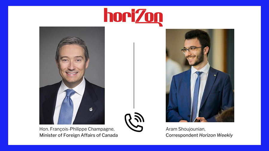 Հոկտեմբեր 27ին, Գանատայի արտգործ նախարարութեան գերատեսչութեան հետ ճշդուած պայմանաւորուածութեամբ, Գանատայի արտաքին գործոց նախարար Ֆրանսուա Ֆիլիփ Շամփայն հեռախօսակապով յատուկ հարցազրոյց մը ունեցաւ «Հորիզոն» շաբաթաթերթի աշխատակից Արամ Շուժունեանի հետ։