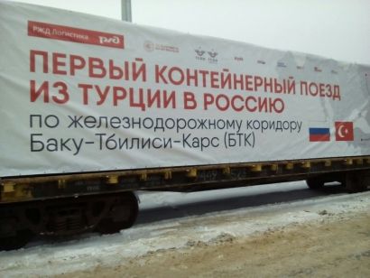 Բաքու-Թբիլիսի-Կարս երկաթուղով արտահանում իրականացնող առաջին գնացքը ժամանել է Ռուսաստան: Գնացքը Անկարայից մեկնել է հունվարի 29-ին, այնուհետև տարանցել է Վրաստանով և Ադրբեջանով, իսկ ահունվարի 9-ին հասել է իր վերջնակետին՝ Կալուգայի շրջան: Հայտնում է ռուսական Նիկա ԹՎ-ն: