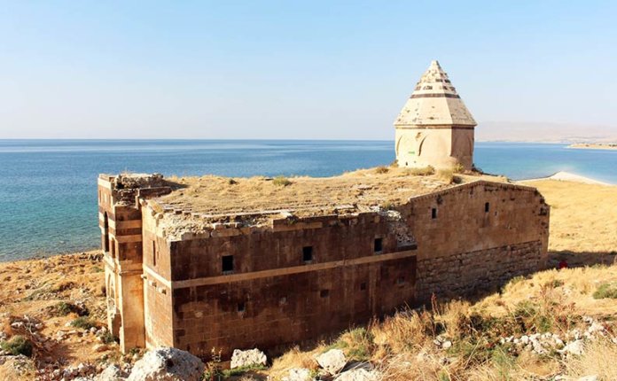 Աղթամար։ Անոր վրայ կառուցուած է կատարելատիպ Ս. Խաչի վանքը, որ կը կոչուի Աղթամարի վանք, (16րդ դար)։ Վանքը ունեցած է Մատենադարան, մագաղաթեայ ձեռագրեր, մատեաններ, գրչագրական արուեստ, պատմական յիշատագրեր եւ կաթողիկոսական կոնդակներ։