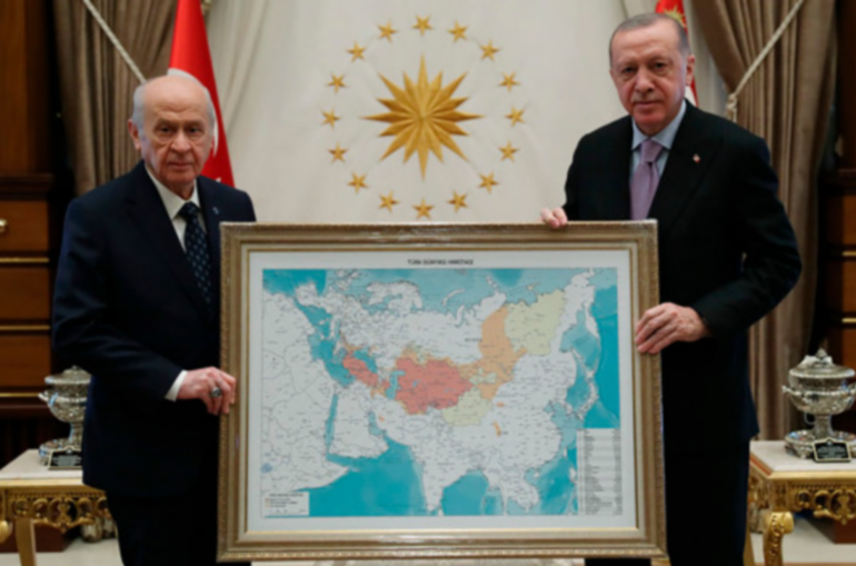 Հիշեցնենք, որ Թուրքիայի Ազգայնական շարժում խորհրդարանական կուսակցության առաջնորդ Դևլեթ Բահչելին երկրի նախագահ Ռեջեփ Թայիփ Էրդողանին նվիրել է թյուրքական աշխարհի քարտեզը, որն ընդգրկում է Ռուսաստանի տարածքի զգալի մասը։ Բահչելիի և Էրդողանի՝ 45 րոպե տևած հանդիպումից հետո կուսակցության թվիթերյան էջում հրապարակվել է քաղաքական գործիչների լուսանկարը, որտեղ նրանք կանգնած են՝ շրջանակված քարտեզը բռնած: Քարտեզի վրա Ռուսաստանի Դաշնության գրեթե 20 բաղկացուցիչ սուբյեկտներ Դաղստանից մինչև Օրենբուրգի մարզ, ներառյալ Սիբիրի զգալի մասը վերագրվել են «թյուրքական աշխարհին»։