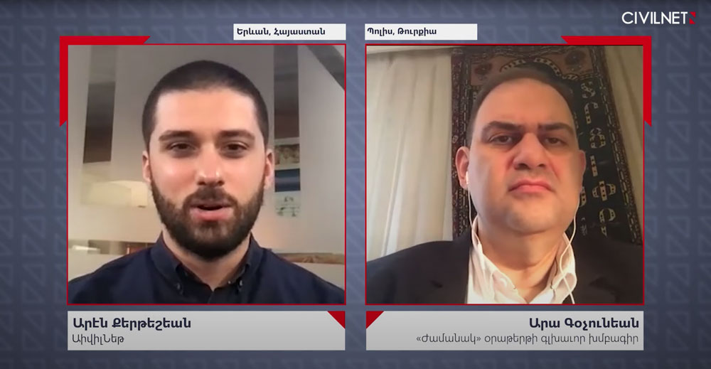Երեւանակեդրոն «Սիվիլնեթ» կայքէջի «Զարկերակ» ծրագիրը վերջերս անդրադարձաւ ԺԱՄԱՆԱԿ օրաթերթի մատնուած կացութեան։ Յիշեալ ծրագրի հեղինակ Առէն Քերթեշեան հարցազրոյց մը ունեցաւ ԺԱՄԱՆԱԿ-ի գլխաւոր խմբագիր Արա Գօչունեանի հետ։ Անցեալ 28 հոկտեմբերին, ԺԱՄԱՆԱԿ-ի 114-րդ տարեդարձի խմբագրականին մէջ հնչած ահազանգի արձագանգներէն մին է այս հարցազրոյցը։ ԺԱՄԱՆԱԿ-ի անդունդի եզրին հասած ըլլալու վերաբերեալ այս ահազանգը ներկայիս լայն արձագանգ կը ստեղծէ հայկական զանգուածային լրատուութեան միջոցներու աշխարհէն ներս, ուր խոր մտահոգութեան ալիք մը յառաջացած է։ Ստորեւ կը ներկայացնենք Առէն Քերթեշեանի կողմէ Արա Գօչունեանի հետ կատարուած հարցազրոյցին սղագրութիւնը։